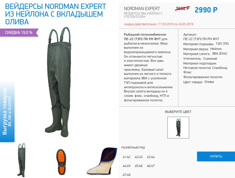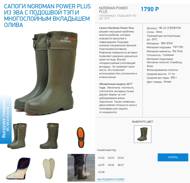 QUOTE(Weksel @ Feb 12 2018, 15:42) Весной и осенью берцы бундесвера, летом по жаре берцы Belleville 390 с подошвой vibram, в грязь сапоги резиновые ( на этот сезон купил сапоги ЭВА Нордман ) Тоже прикупил сапоги Нордман и полукомбенезон. Завтра курьер должен доставить,посмотрим что за зверь такой. Сапоги брал с усиленной подошвой. Сообщение отредактировано descor: Mar 11 2019, 22:32 Вложенные эскизы изображений -------------------- Что видишь, всё твое; везде в своем дому,