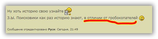 QUOTE(Руся @ Apr 15 2019, 21:47) Ну хоть историю свою узнайте З.Ы. Поисковики как раз историю знают, в отличии от гробокопателей Это обвинения или так, попистедь? -------------------- Копая там, где ты копал, вопрос простой, -а ты там клал?