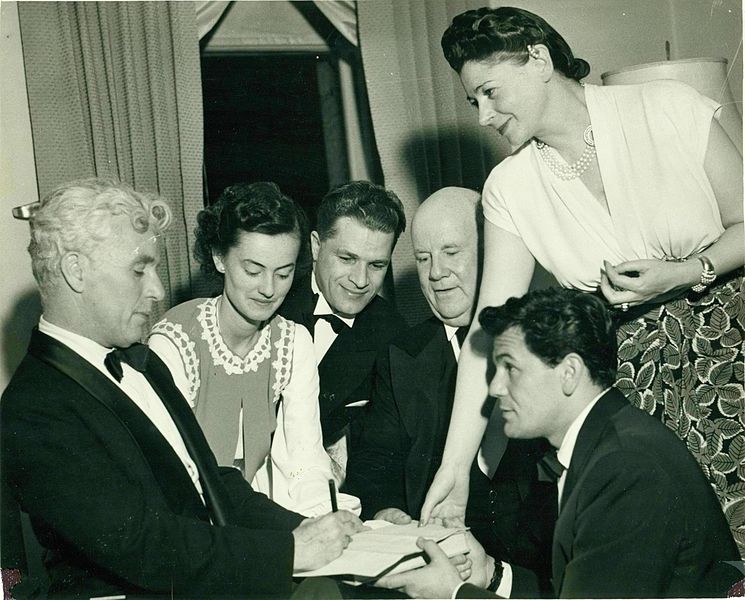 18 мая 1942 года по инициативе «RWR» в Сан–Франциско состоялся многотысячный митинг. Чарли Чаплин публично выступил с требованием открытия Второго Фронта перед многотысячной толпой. По его предложению была подготовлена телеграмма президенту Рузвельту. Присутствующие на митинге 10 тысяч американцев поддержали предложение Чаплина нескончаемыми аплодисментами. Событие имело огромный общественный резонанс. После этого, глава ФБР Эдгар Гувер дал указание активизировать работу по сбору на Чаплина обширного досье, начатого ещё в 1930–е годы. После окончания войны, Комиссия по расследованию антиамериканской деятельности начинает активную антикоммунистическую кампанию в Голливуде. Антифашистские фильмы и выступления Чарли Чаплина ряд сенаторов рассматривал, как «соглашение с коммунистами», и требовал его изгнания из США. 17 сентября 1952 года Чаплин отправился в Лондон на мировую премьеру «Огней рампы», и Эдгар Гувер добился от иммиграционных властей запрета на обратный въезд актёра в страну. В итоге, Чаплин покидает США и переезжает в Швейцарию, где будет жить до конца жизни. После изгнания великий актер побывал в США только один раз. Спустя 20 лет после отъезда, в 1972 году уже пожилого Чарли Чаплина решили наградить почётным «Оскаром» за выдающийся вклад в развитие киноискусства. Для этого он согласился приехать на короткое время в США — ему выдали лишь ограниченную визу. Вложенные эскизы изображений |