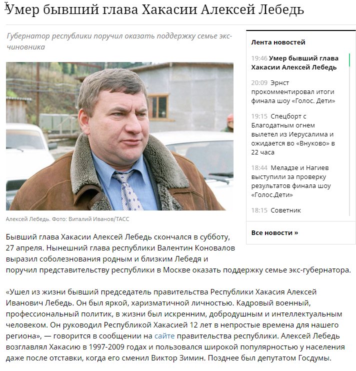 Ушел из жизни бывший председатель правительства Республики Хакасия Алексей Иванович Лебедь. Он был яркой, харизматичной личностью.