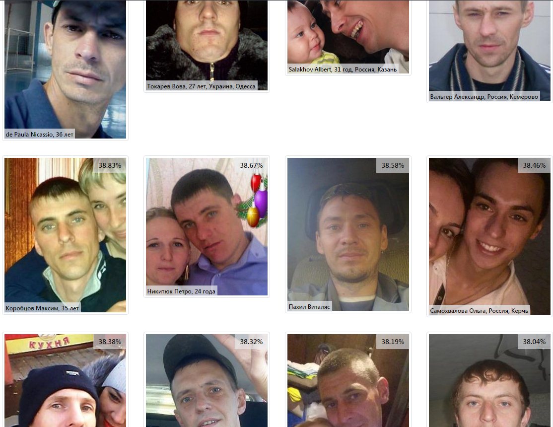 QUOTE(Soltek @ Jul 17 2019, 13:37) Не знаю что у вас там работает - сервис предлагает до 50 человек, похожих на оригинал загруженной фотографии. С процентным соотношением совпадения...Проверил две морды - они не найдены в соц сетях, хотя там есть... А я загрузил групповое фото родственников , где я сам есть . Так на первом фото которое выдал сайт , ссылку на мою страницу |