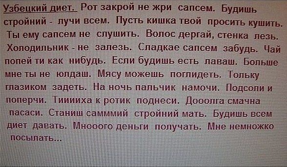 было 95, ща 90 .. думаю не останавливаться на достигнутом, играя уменьшением количества еды, исключением некоторых продуктов.. однако терпишь-терпишь, а иногда прорывает и нажираешься аж до болей в боку, нечасто, но есть.. вес довольно стремительно набрал, когда бросил курить 3 года назад.. около 15кг добавил.. |