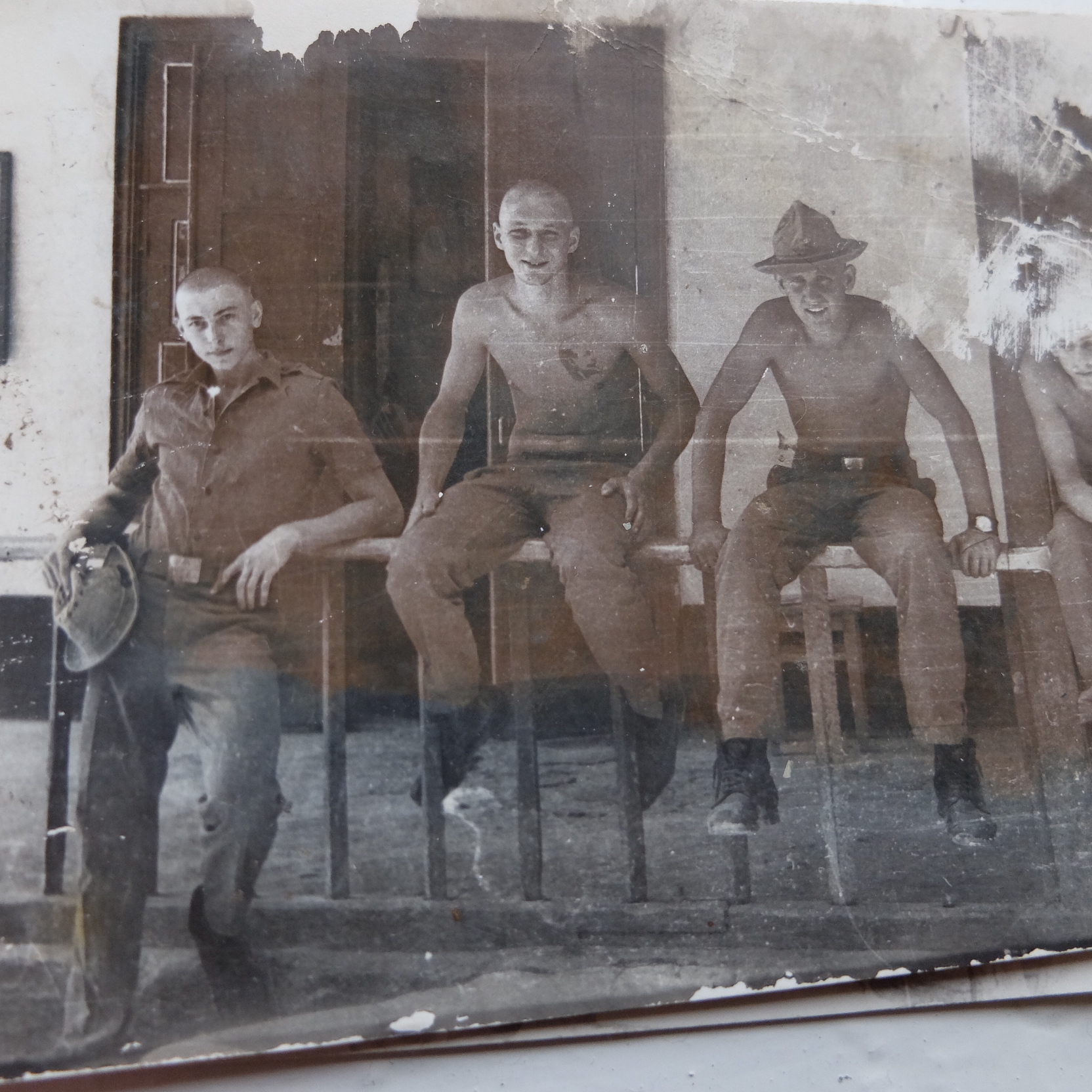 QUOTE(Петрович @ Mar 12 2016, 16:52) Эх, годы мои молодые! На общем фото, слева направо- я, Миша Дудин с самарской области, Серёга Башаев-мордвин, замечательнейший парень, настоящий герой и последний- Вася Калинкин, чуваш. В поля панамы, по бокам тоже кусочки проволоки вставляли? На первой фотке, видится характерный загиб сбоку А форму такую, нам в середине лета 82-го выдали. До этого в сапогах шагали. Витя Кисель, казак и Саша Домрачев, с Йошкар-олы (замки наши, в учебке) -------------------- Вы там, где вы есть, и тот, кто вы есть, потому что вы решили тут быть.