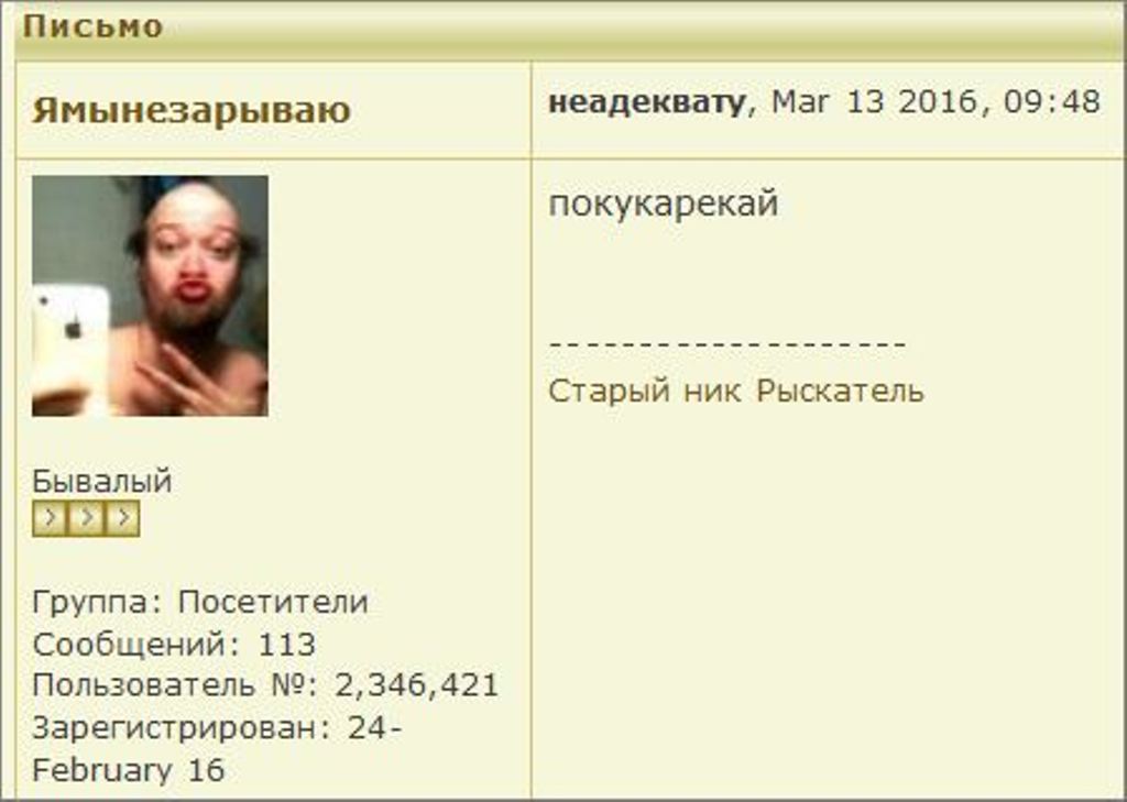 QUOTE(Петро @ Mar 25 2016, 10:43) а вот интересно, что бы сказали психологи о стремлении человека, внешне нормального, не урода, ставить такие образины на аватарку? Почему образины -------------------- Рыл рыл Свинорыл и монетку отрыл