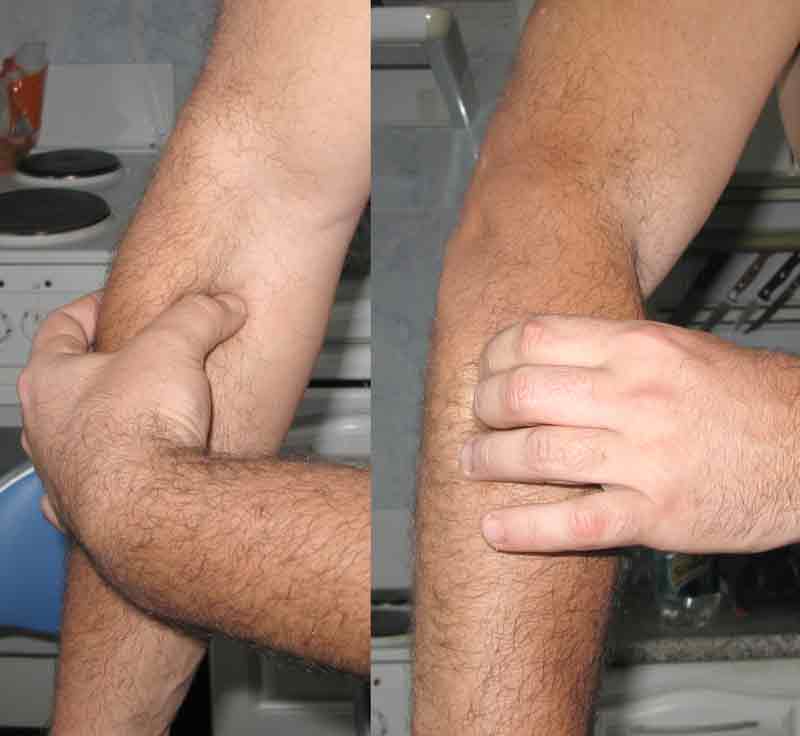 3 пальца (безымянный,средний и указательный) со стороны локтя (ниже его)... Нашупываете углубление между костью, и мышцей, которая спереди.... Большой палец, как бы охватывает эту мышцу... Сантиметров на 5-6 ниже вены (того участка откуда берут кровь).... Проминать довольно сильно... Медицинских названий мышц и костей не использую... Если бестолково объяснил, завтра попрошу жену чтоб помогла сфотать что куда.... -------------------- Одна голова - хорошо... две - лучше... а три - мы не прокормим...