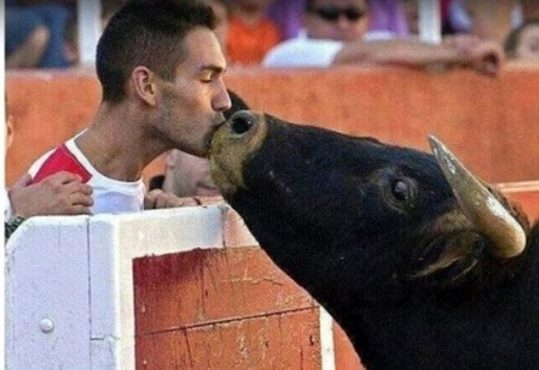 В Испании есть обычай – вырастить быка и продать его для заклания на арене. Во время корриды обезумевший от боли и истекающий кровью бык узнал среди беснующихся зрителей единственное близкое существо – бывшего хозяина, который с такой любовью заботился о нем, пока тот был теленком, и подбежал к нему, ища спасения и защиты. Человек ответил ему прощальным поцелуем, который вошел в историю испанской фотожурналистики как "Поцелуй Иуды". Бык покорно вернулся на арену. Спустя несколько минут матадор прикончил животное... Вложенные эскизы изображений |