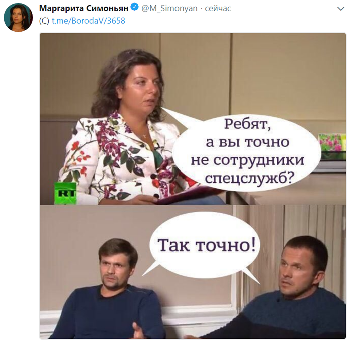 QUOTE(Miguel @ Sep 16 2018, 17:17) Да, не тот нынче разведчик пошел. Кто же так алиби себе создает. Бюджет конечно мал, для таких операций. Экономили на всем. Бабу и ту одну на двоих взяли. Медведя с балалайкой в отель конечно не пустят, но цыган с гитарами заказать в номер нужно было обязательно. Если они считают наших последними клоунами..,то тогда что они и таких профукали.. значит вообще дэбилы. -------------------- Заседание продолжается, господа присяжные заседатели!