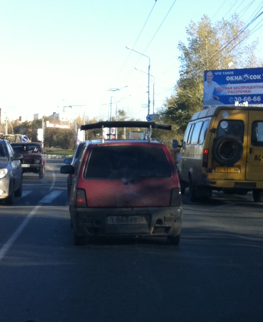 Да...чего только на Оку не прикручивают.Хотя в данном случае при правильной настройке этого "крыла" заднее стекло будет всегда чистое.