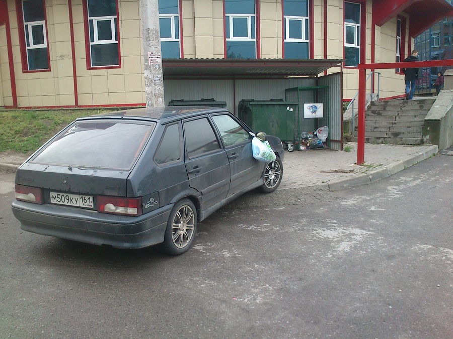 Сегодня утром увидел такую картину. Месть мусорщиков за то, что чудак перекрыл подъезд к мусорке своим чудомобилем.
