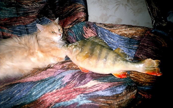 Глубина ловли 2,5 метра,а кота тоже портить не стали(хотя по весне орет-ужас!Дает знать- скоро в поле!..)
