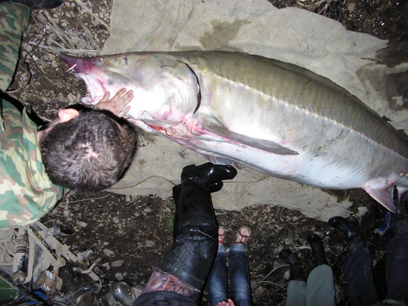 Самая большая из пойманных мной- калуга 115 кг. Озеро Чля в Николаевском р-не Амурской обл. Донка. Насадка- копченая корюшка. Поймана в 1987г., фото не делали. Взвешивали в столовой на руднике, там же и сьели.