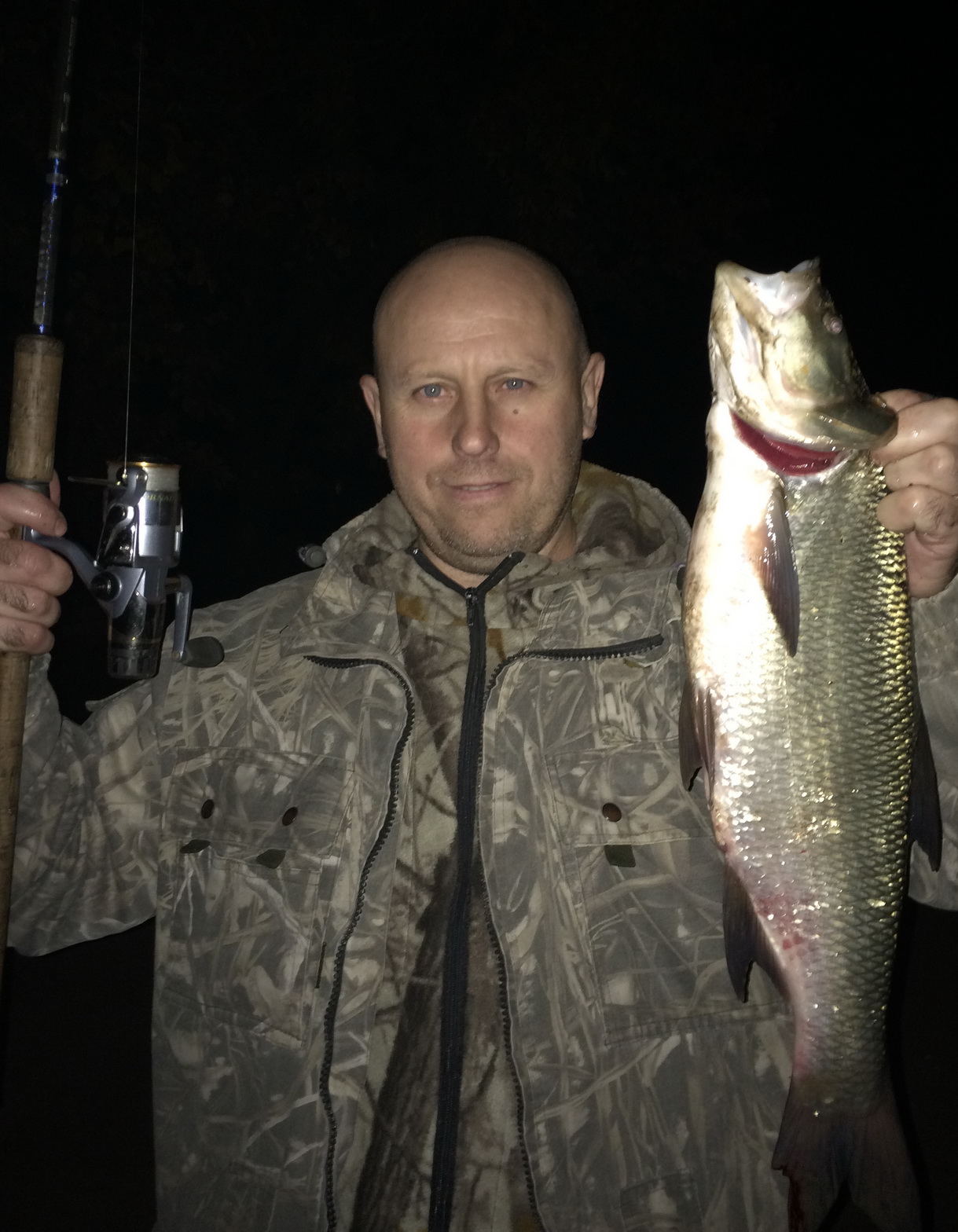 Три часа назад этот жерешок ещё охотился. 1,7кг - не призовой вес, но для нашей небольшой речки - гигант! Ни я, ни мои друзья жереха у нас не ловили (на Волге бывало. Там душу отводил).