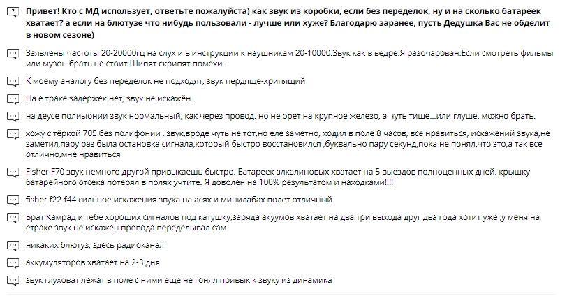 QUOTE(AMYRSV @ May 1 2018, 19:22) Как обещал, сегодня в работе проверял Бингл 616 В . Отлично работают. Уши держатся, не спадают при выкапывании цели. Информативность- отличная. Запаздывания нет. Ничего в схему нет необходимости впаивать. Тональность- как без ушей. Джек- переходник с 6,3 на 3,5 -угловые-(трехполюсные) заказывал тоже с Али. держатель трансмиттера- ведосипедный держатель смартфона-тоже с Али- за копейки. Полная стоимость всего этого- около 1500 р. С фото неохота заморачиваться. Всем - всех благ! можно ссылку на "Джек- переходник с 6,3 на 3,5 -угловые-(трехполюсные)" |