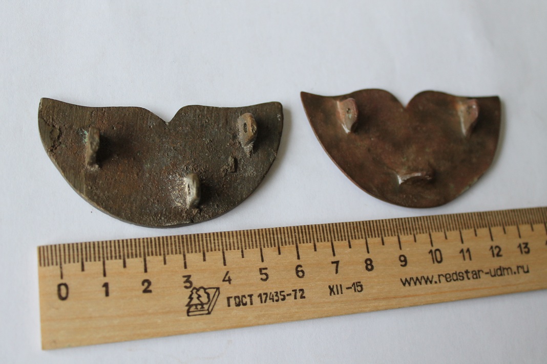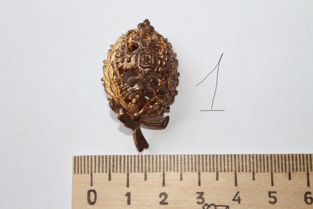 1. Петличный знак чиновника Российской Империи. Без арматуры- ищите сами.