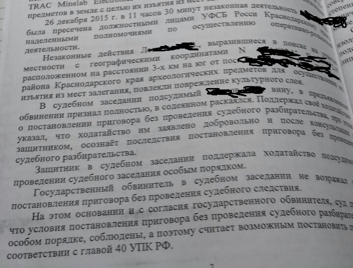 Что бы понятней было для людей, которые считаю выше своего достоинства закапывать ямки и ямы, необходимость такой процедуры. Это дело начиналось с не закопанных шурфов. Больших ям, которые копались практически в течении года. Но все таки, видимо аграриям надоело, что их поля так нагло копают. Чел получил 3 года условно, с испытательным сроком 3 года. Прибор конфисковали. кусочек приговора. Обратите внимание, кто его принимал. Сообщение отредактировано Усть_Л: Nov 11 2016, 23:29 Вложенные эскизы изображений |