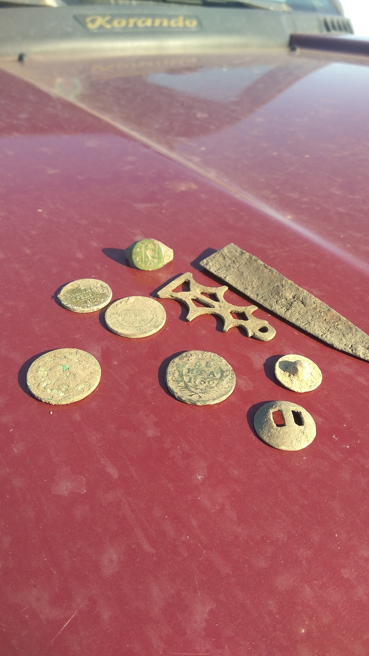 Всем здравствуйте! Сегодня был первый полноценный выезд с крузером. Ездили на битую поселуху. По мимо основных находок выкопал еще огромную кучу гвоздей кованых и не только, их он видел прекрасно и с приличной глубины! А вот с медью дела были хуже