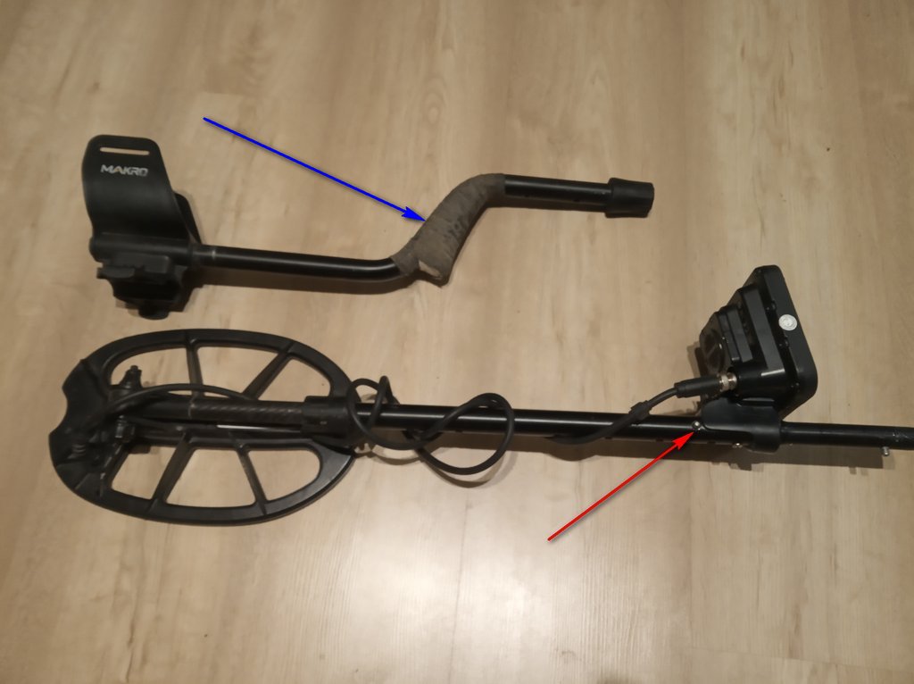 Так как я в общем и целом не фанат S -образного конструктива родная штанга ММК подбешивала меня изрядно. Уже было начал подумывать о пересадке на штангу от Деуса или карбоновую (https://www.reviewdetector.ru/index.php?showtopic=2068470&st=180) но ценничек таков что проще продать ММК и купить Амфибио Больше всего напрягало каждый раз разбирать и откручивать штекер, да и здоровья этому штекеру это не прибавляет. Выход был найден достаточно простой. Я снял цанговый зажим и открутил "голову" с креплением от третьего колена и пересадил её на второе. Понадобилось только просверлить отверстие 4 мм. Так же под 90 градусов от отверстий второго колена просверлил отверстие 6 мм возле самого крепления головы. Теперь складывая карбоновое первое колено поворачиваю его на 90 градусов и фиксирую, чтобы при вытягивании из рюкзака оно не выползало.(красная стрелочка) Так же снял родную круглую резиновую накладку и добавил сегмент из плотного пенопласта. Стало более ухватистей.(синяя стрелочка) Голова отъехала на 16 см. Немного неудобно стало играться настройками, но это можно делать и второй рукой. Зато один раз закрутил штекер и забыл про него. Плюс укладывать в рюкзак . Приблизительно 72 см по длине катушка,первое колено и второе колено вместе с блоком. Ни кого не агитирую , но может кому пригодится. -------------------- РАРИКИ-ЭТО ИДЕНТИФИЦИРОВАННЫЕ КАКАЛИКИ!