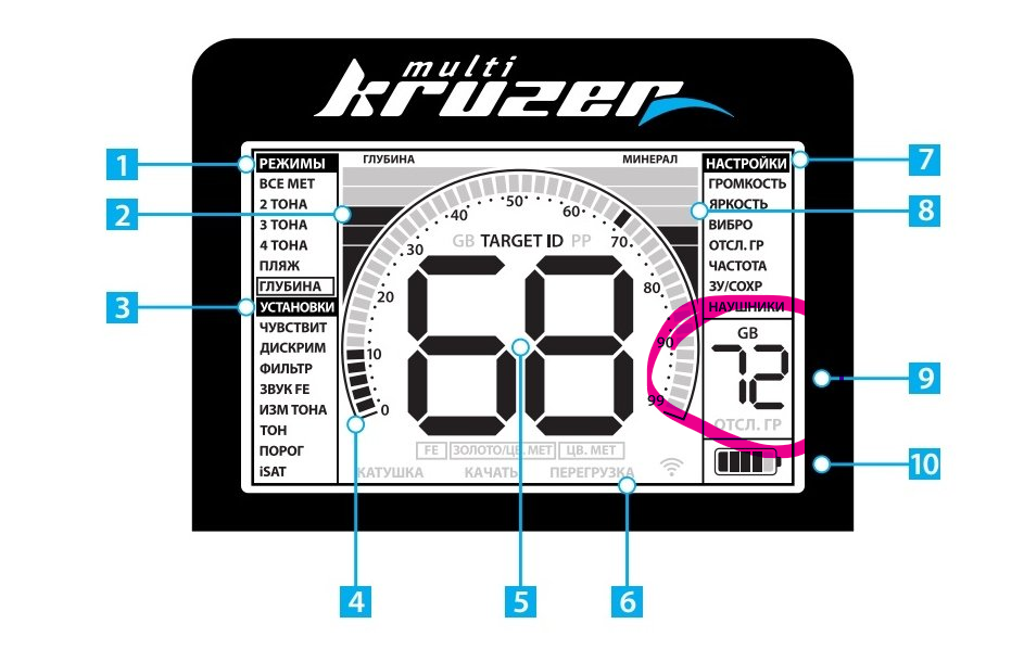 Добрый день. Подскажите, в инструкции этот пункт (выделено кружком на фото) описан как - Секция, в которой отображается точное значение уровня балансировки при отстройке от грунта.
