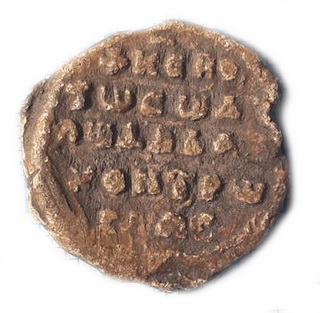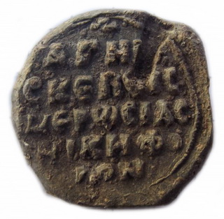 https://ru.wikipedia.org/wiki/%D0%9D%D0%B8%...BA%D0%B8%D0%B9) №111. Л.с. Греческая надпись в пять строк: АГNН / СКЕПОIС / МЕРОСIАС / NIКНФ / РОN (Пресвятая, воззри на меня, Никифора (пастыря) Росии). Вокруг точечный ободок. О. с. Поясное изображение Богоматери «Знамение». По сторонам: М – ΘV (под титлами). Вокруг точечный ободок. Диаметр: 23 мм. Место находки: Украина, 2013 г. Хранится в ч.к. (Жуков И.А. О новых находках именных вислых печатей иерархов русской церкви (XII век) // Русь. Литва. Орда в памятниках нумизматики и сфрагистики. Том 5. Спецвыпуск «Сфрагистический сборник». Минск, 2018. С. 184. Булла №7). Сообщение отредактировано Сфраги: May 4 2018, 12:40 Вложенные эскизы изображений -------------------- Куплю вислые печати К.Р.