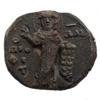 https://ru.wikipedia.org/wiki/%D0%98%D0%BE%...%BF%D0%B8%D0%BD №113. Л. с. Греческая надпись в пять строк: +АГNЕСКЕ-ПОICMETОN-ΘVTNNNW-RОГРIАД-W (Пресвятая, воззри на меня, пастыря Новгородского). Вокруг ободок. О. с. Поясное изображение св. Иоанна Богослова с кодексом в левой руке. Слева колончатая надпись: О-IW(под титлом), справа: Θ–ЕО–АГ–О. Вокруг ободок. Диаметр: 23 мм. Место находки: Киевская обл., 2011 г. Хранится в ч.к. (Жуков И.А., 2018. РЛО. Т. 5. С. 190. Булла №1). Сообщение отредактировано Сфраги: May 4 2018, 12:43 Вложенные эскизы изображений -------------------- Куплю вислые печати К.Р.