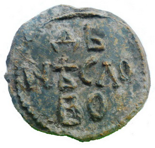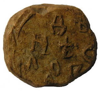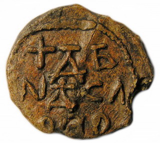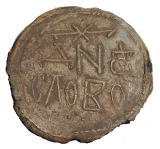 №137. Тип 2а. Л.с. Надпись в три строки: +ДБ–NЪСЛ–ОВО. Вокруг точечный ободок. О.c. Погрудное изображение св. Иоанна Предтечи с крестом у левого плеча. Слева колончатая надпись: I-W (под титлом), справа: А. Вокруг точечный ободок. Диаметр 23-26 мм. Место находки: Черниговская обл., до 2017 г. Хранится в ч.к. (Жуков И.А., 2018. РЛО. Т. 5. Свод. С. 24. Тип 2а).