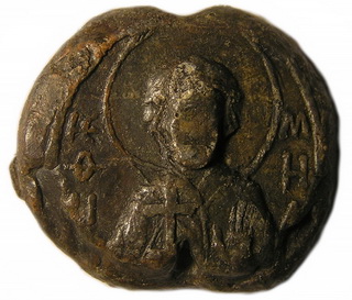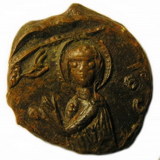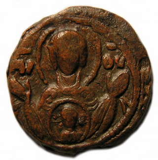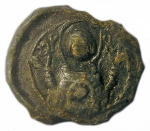 №183. Л.с. Ростовое изображение св. Василия Кесарийского. Слева и справа колончатая надпись. Вокруг точечный ободок. О.с. Ростовое изображение Богоматери Агиосоритиссы. Справа: ОV (под титлом). Вокруг точечный ободок. Диаметр 20 мм. Место находки: Львовская обл., до 2009 г. Хранится в ч.к. (Жуков И., 2012. С. 9-10, рис. 9). Сообщение отредактировано Сфраги: Apr 8 2019, 17:08 Вложенные эскизы изображений -------------------- Куплю вислые печати К.Р.