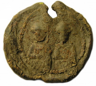 https://www.allmonarchs.net/pmwiki/pmwiki.p...%B2%D0%B8%D1%87 №182. Л.с. Погрудное изображение св. Иоанна Златоуста со свитком в левой руке. Слева колончатая надпись: (А- Н), справа: О-А-N. Вокруг ободок. О.с. Погрудное изображение св. Василия Кесарийского. Слева колончатая надпись: (В-А-С), справа: Н-Л-(Е). Вокруг ободок. Диаметр 18 мм. Место находки: Волынская обл., 2009 г. Хранится в ч.к. (Жуков И., 2012. С. 9, рис. 5). Сообщение отредактировано Сфраги: Feb 22 2019, 11:21 Вложенные эскизы изображений -------------------- Куплю вислые печати К.Р.