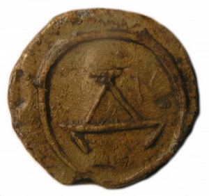 Комментарий: киевский исследователь Алфёров А. полагает, что на оборотной стороне пломбы написано название древнего города Новогрудок, который во времена Киевской Руси был важным торговым центром, а сама пломба является городской (Алфёров А. Рубежи, рёбра, сорочьи лапки, крюки...Торговые пломбы Киевской руси // Антиквар №11(48). Киев, 2010. С. 37, илл. 12). Вложенные эскизы изображений -------------------- Куплю вислые печати К.Р.