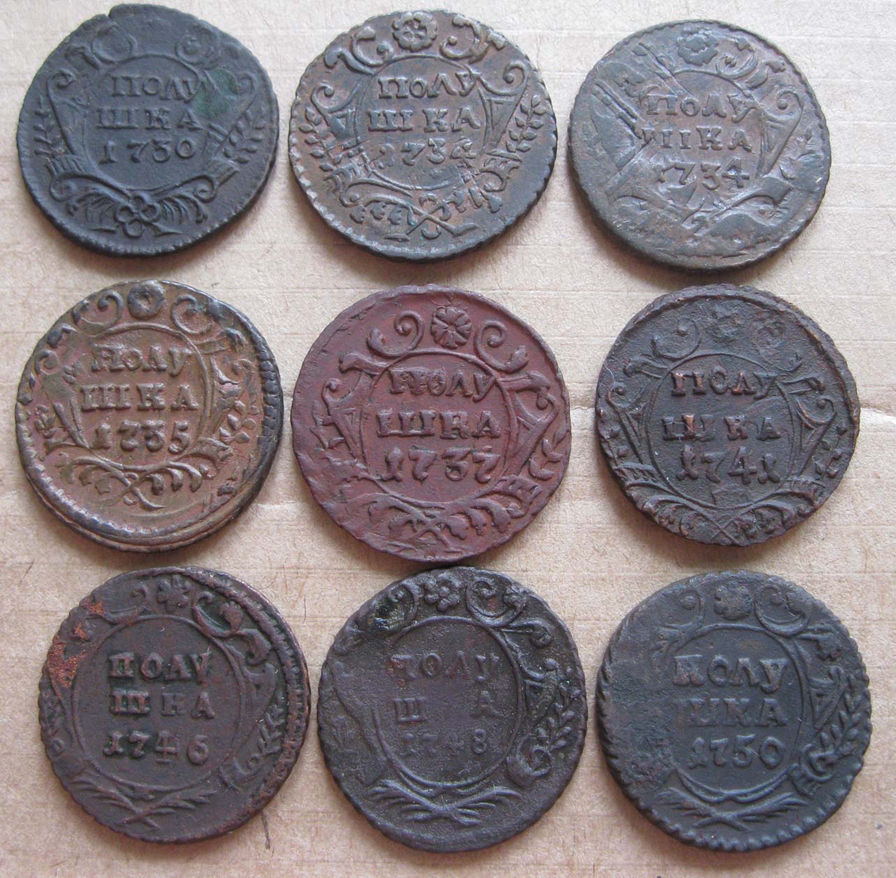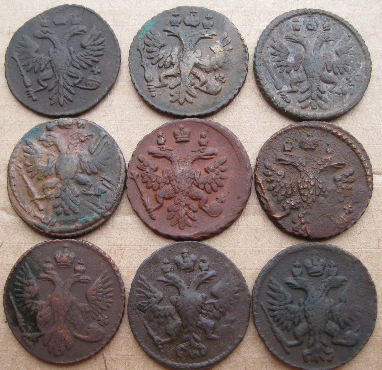 Всё не влезло, вот аверсы. Вложенные эскизы изображений -------------------- Куплю кладовые денга и полушка 1730-54 г.г.