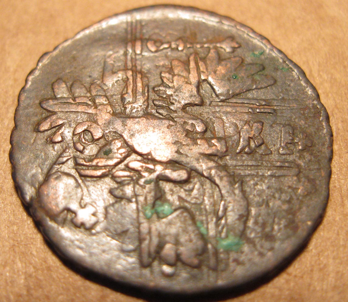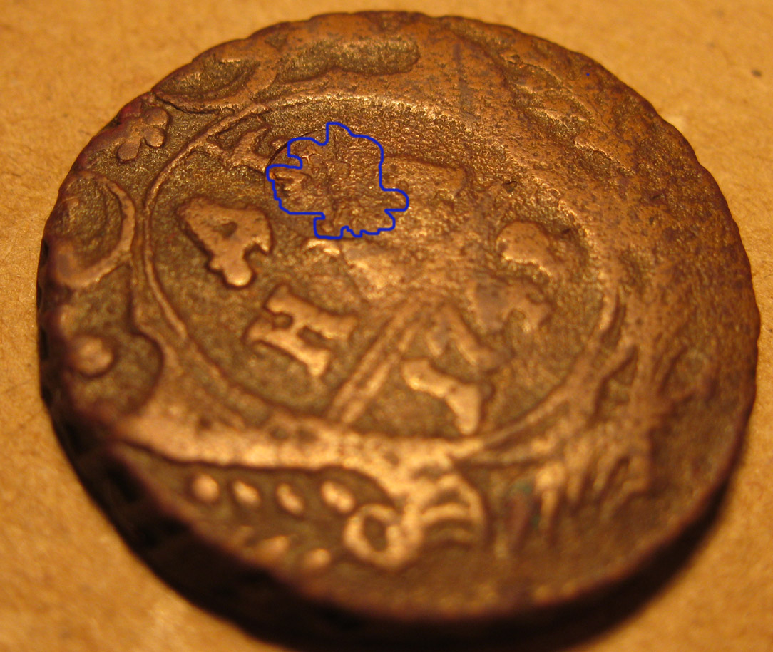 вот ещё такие козявки : полушечка Бог знает какого года, но перечекан с крестовой копейки инкузной, так сказать масло масленное, состояние правда не ахти и на фото и вживую не самое лучшее, но в общем понятно.
