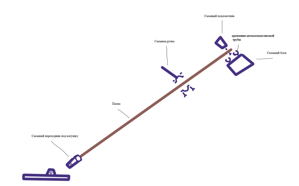 важные моменты - маленькая катушка, и блок без экрана под локтем. Прямую штангу можно использовать как туристическую палку, только сделать съёмный переходник под катушку. Да вообще надо Руки приложить ко всем узлам прибора. так что в принципе не безнадежная идея. Вложенные эскизы изображений -------------------- Утерян кошелёк с зарплатой! Убедительная просьба к нашедшему - не ржать.