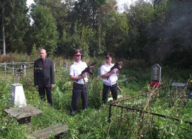 Один из шестерых найденных бойцов - Гаврилов Макар Гаврилович обрел покой в родной деревне, на одном кладбище с отцом и братом. На заднем плане в черной куртке сын бойца Василий Макарович. Сообщение отредактировано oleg_g: Aug 30 2011, 21:16 Вложенные эскизы изображений -------------------- Esse quam videri