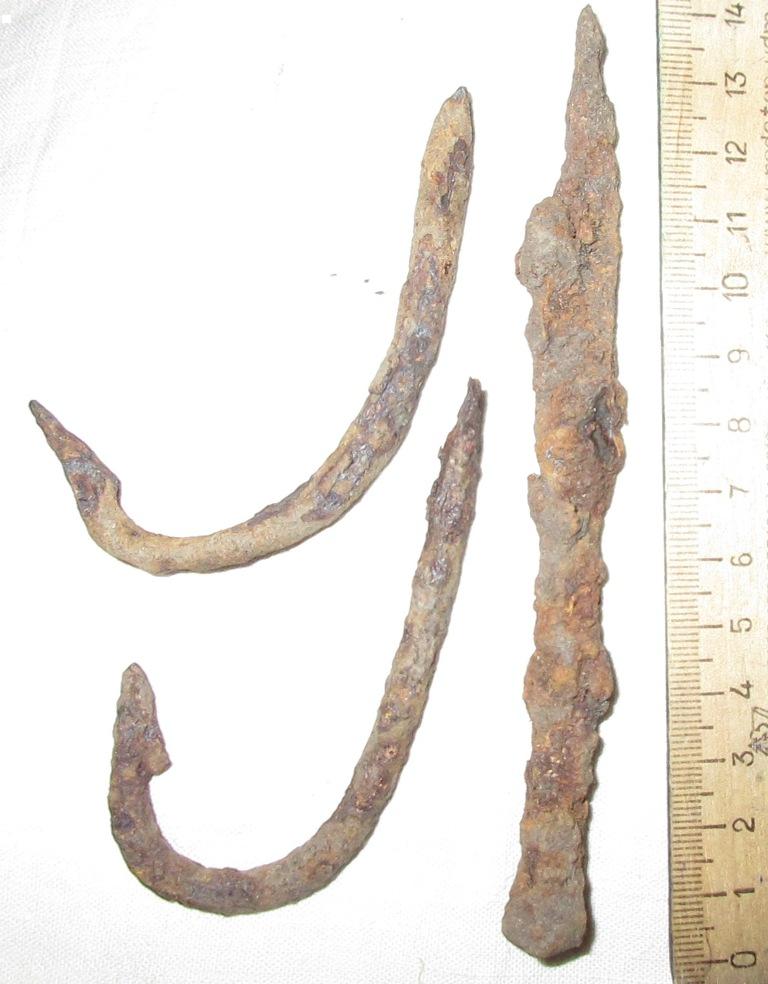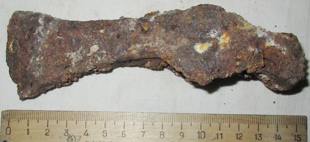 Тема конечно изьезженная,немало копий сломано. И всёже решил создать темку. Около года назад, окинув взглядом железные находки лежащие годами в ящиках и безвозвратно осыпающихся,задался вопросом ,что делать? Поначалу просто пробовал вымачивать,чистить и воронить в льняном масле. Но не вся ржа убиралась и из под воронения вылезала новая. Так,как консервантов по железу на нашей перефирии не найдёш,решил попробовать с углеродным методом востановления железа. Благо в дровах проблем нет. Сварил пару контейнеров,обычно пользуюсь ящиками,а для более длинных предметов контейнер из трубы.Для наполнителя шашлычный уголь подходит замечательно. Процес описывать не буду,всё это есть в сети и здесь уважаемый Тлемсен описывал. Скажу сразу процес занимает немало времени и сам по себе недешовый. Фото до