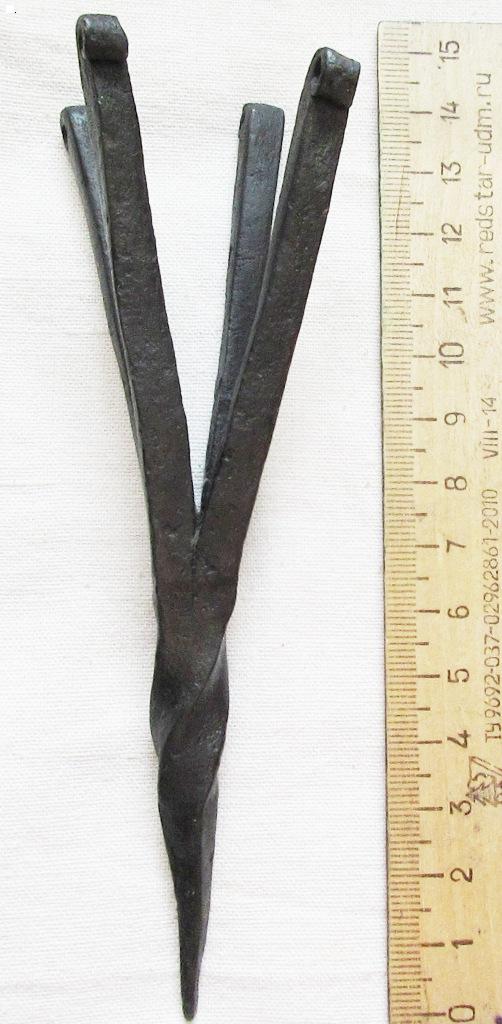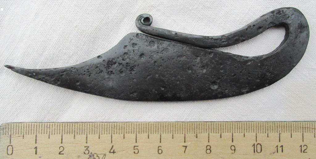 Когда предмет готов.закаливаю если требуется и вороню в льняном масле. Метод конечно не панацея и не для всех предметов подходит. Например замочек по моему мнению надо было подвергать другому методу расчистки и консервации. Что мне нравится в этом методе,что в итоге железо выходит крепкое,как новое,выгорают все соли.Сознательно не довожу предметы до идеального вида ( каверны),как бы оставляю им более аутентичный вид. Тут на вкус и цвет как говорится.