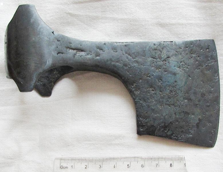 На самом деле сантиметра полтора ушло при подравнивании лезвия да и обушной части,так как на них были утраты. Есть ещё топорики данного периода в работе,обязательно покажу фото после прокалки. На некоторых экземплярах ,при всей их кажущейся внешней целостности ,после прокалки появляются утраты,ну и тут подварка ,а потом опять прокаливание для гемогенизации металла.