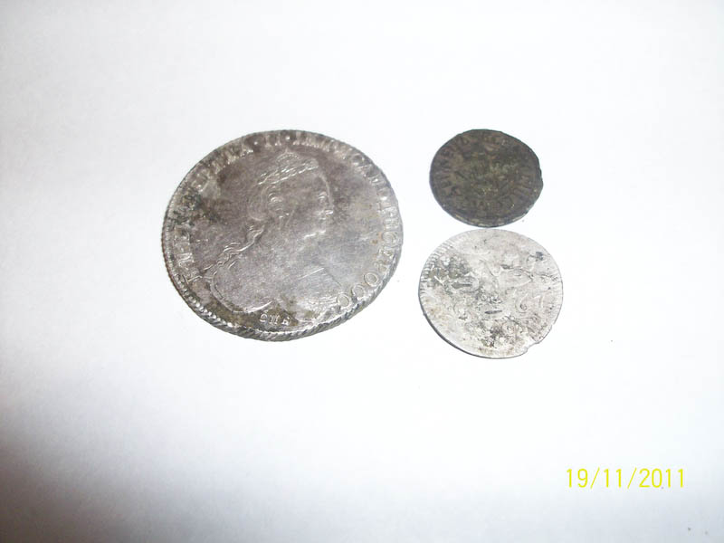 Сегодня копали под Копорьем-ужас, все поля в шурфах. На двоих 16 какалов. Удивил Елизаветинский гривенник найденый на поле которое все в ямах и нет никаких сигналов.
