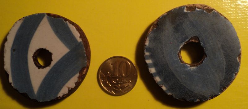 Попались пару эмалированных керамических кругляшей,если бы не эмаль,то решил бы что грузила на сеть,а так не ясно предназначение
