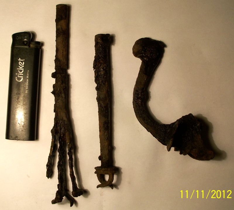 Первая железяка, кажется, часть замка. Пороюсь у себя в фотоархивах. Кажется есть что-то подобное.
