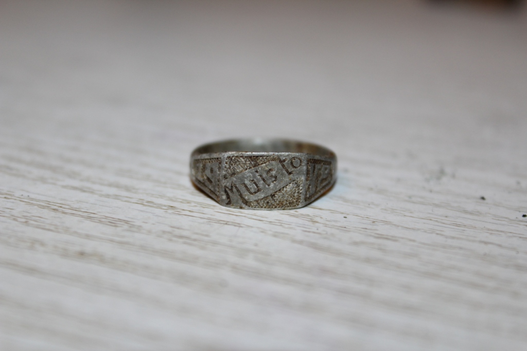 Перстенёк интересный, муйсто в переводе с финского - память. Алюминь?
