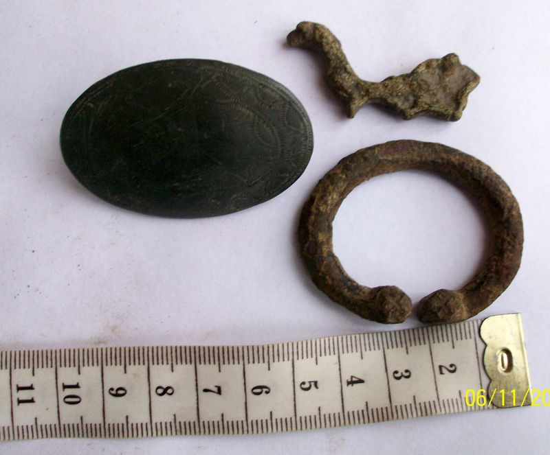 QUOTE(Питерский Леший @ Nov 16 2013, 22:28) Попробуем Часть от фибулы вижу. А зелёное не миничерепах случаем.? 5,5 х 3 см, вполне такой среднестатистический черепах, карельского типа с оригинальным орнаментом + остатки зооморфной привески, + подковообразная скандинавка без иглы -------------------- Неудачники верят в удачу; удачливые верят в себя!