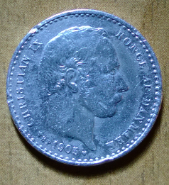 Здравствуйте. У нас "выскакивает" и такое "портретное" серебро - Дания Кристиан IX ("тесть всея Европы") 1905г.