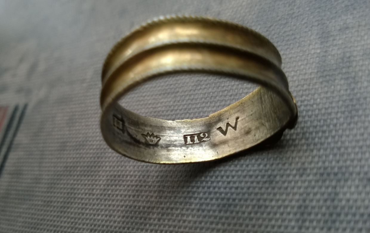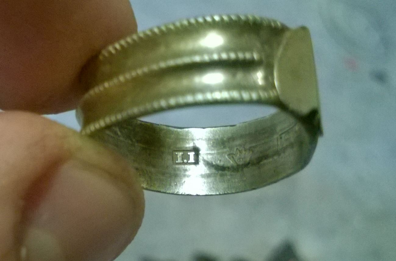 QUOTE(VahtangPelto @ Apr 18 2016, 17:31) Всем здравствуйте ! Отмечусь своим открытием сезона. Колечко интересно тем, что отсутствует клеймо с пробой. Почему ? Не знаю. Прошу помощи знатоков. По колечку. Первое клеймо - производитель. Второе - пробирной палаты. Третье - проба серебра. Четвертое - город. Пятое - год изготовления W - это клеймо пробирной палаты Wiipuri H2 1841г Если нет пробы, значит не драгметалл. ... Кольцо без клейма явно "левое" раньше прерагатива клеймления пренадлежала только под гарантию государства. Хорошее колечко! Поздравляю с находкой! Старое.... Сообщение отредактировано Б@нкир: Apr 18 2016, 17:47 -------------------- God and my right!