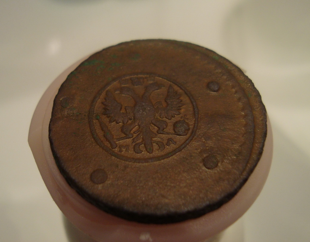 QUOTE(дружносел @ Dec 6 2009, 19:08) викунг удачно цепанул монетку маленькая но интересная, помоет, напишет сам Монетка была петровская впр полушка 172? года. Когда нашел, была вся темненькая, грязненькая, но читаемая. Дома опустил монетку в дистилированную воду на несколько минут (чтобы смыть грязь), а когда вытащил, вся осыпалась... Стал просто кругляк ... |