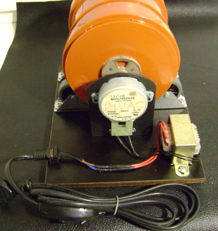 День добрый Остап ! Движок 4/3,5 W с СВЧ печки , колесики только такие в магазине , по началу поработал 5 минут и всё, муфту сделали по длинней т.к пробку не удобно с торца вынимать .Пробки не много подрезали чтобы удленить ремни внутри барабана , загрузка барабана примерно на треть . Сейчас ищу по мастерским движок с гриля .