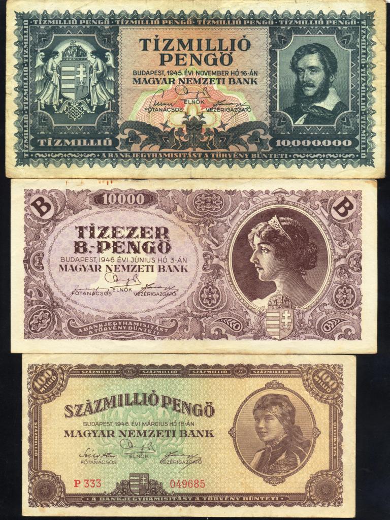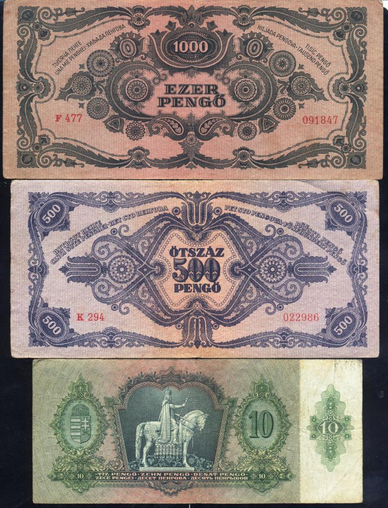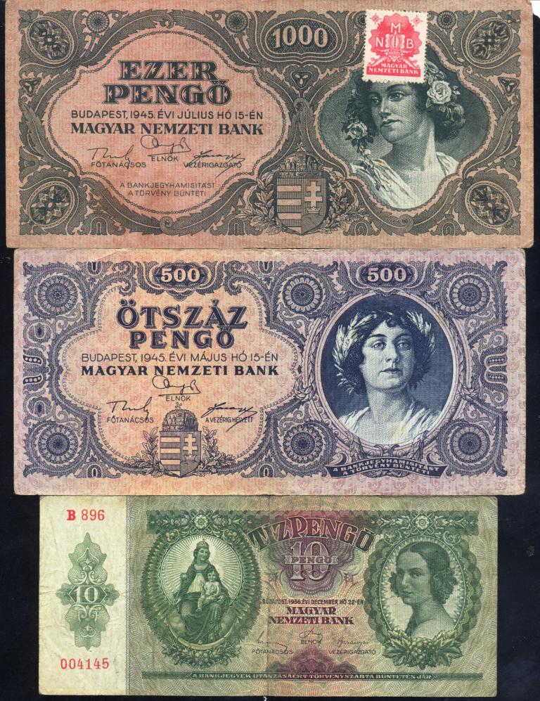 100 пенго 1930 г.- 80 р. 50 пенго 1932 г.- 80 р. 10 пенго 1936 г - 90 р. 5 пенго 1939 г.- 90 р. 20 пенго 1941 г.- 80 р. 500 пенго 1945 г.- 100 р. 1000 пенго 1945 г.- 100 р. 10 000 пенго 1945 г.- 100 р. 1 млн. пенго 1945 г.- 100 р. 100 млн. пенго 1946 г.- 100 р. 1 млрд. пенго 1946 г.- 130 р. 1 млрд. пенго 1946 г.- 130 р. 10 000 биллионов пенго 1946 г.- 130 р. 5 пенго 1944 г.- 120 р. 20 пенго 1944 г.-120 р. 100 пенго 1944 г. -120 р. |