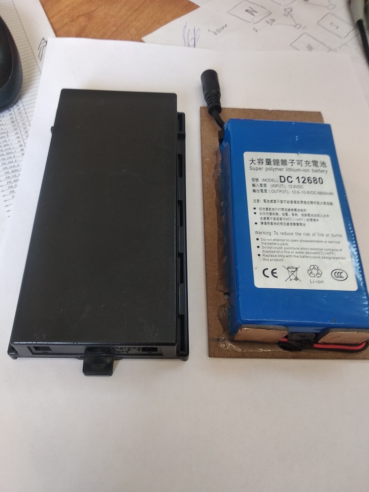 Корпус акумуляторов родной.Немного погрел феном корпус и крышку что бы всё поместилось.Удалил внутренние выступы. Несного коряво ,но работает достойно легче чем с батарейками уж точно. За рабочий день с 12.4 падает до 11,8 двое суток держит напряжение. Всё устраивает теперь |