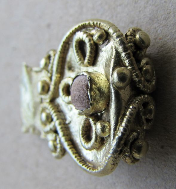 Если судить по состоянию вставки на перстеньке то видится там вставлен не камень,а стекло. Был бы камень ,он не потерял огранку или шлифовку( если он был круглый. Не всё то золото,чть блестит! Идите к ювелиру, определяйте металл. Он вам лучше нас подскажет. Такие предметы по фотографиям не определяют. Те более, что и клейм нет! я бы сказал что скорее там что то типа кости какой то вставлено... |