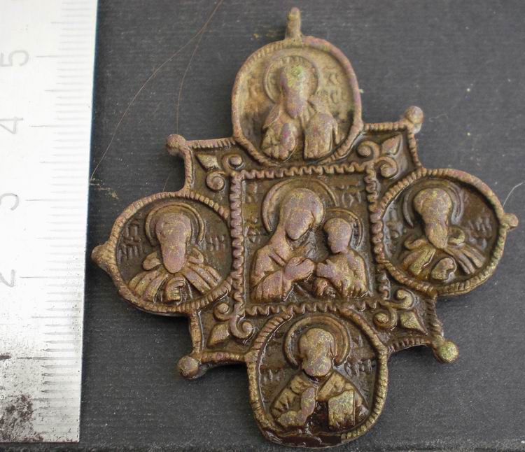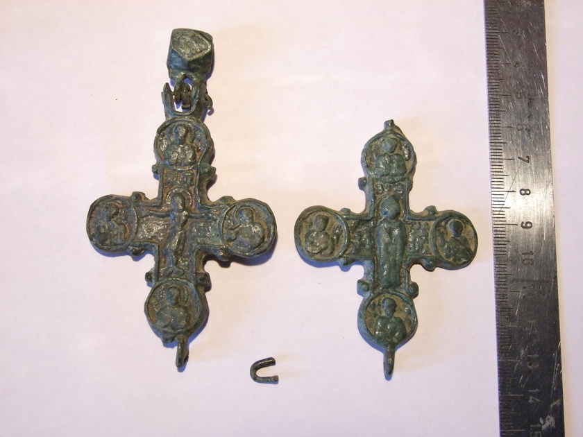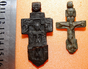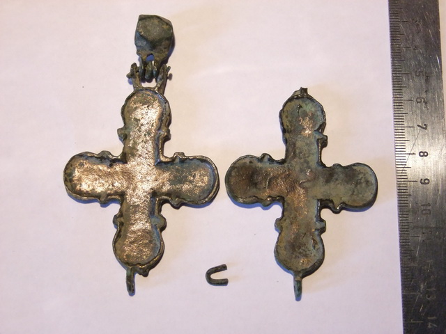 QUOTE(AV.Sots @ Feb 7 2011, 22:55) 16 в. Один из наиболее часто встречаемых. У меня их видов шесть. Первая половина 16 в.Крестильный.Встречаются различные варианты оформления как лицевой,так и обратной стороны.Похоже отливались до конца 16 века.На этом варианте на обратной стороне выпуклая надпись. -------------------- Есть тайны под Луной и для премудрых... В.Шекспир "Гамлет"