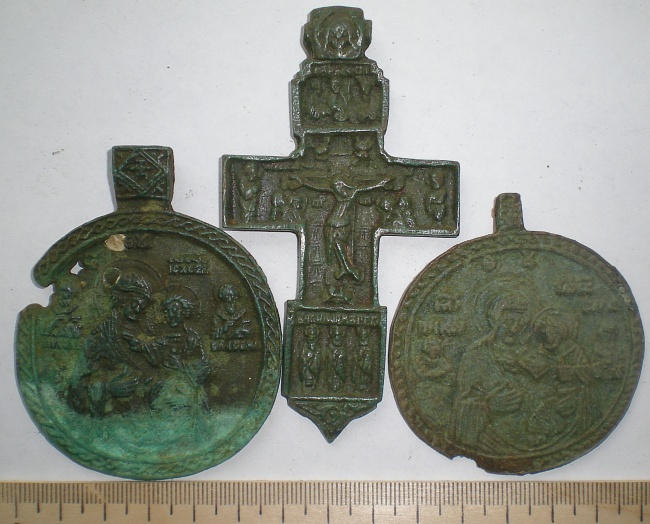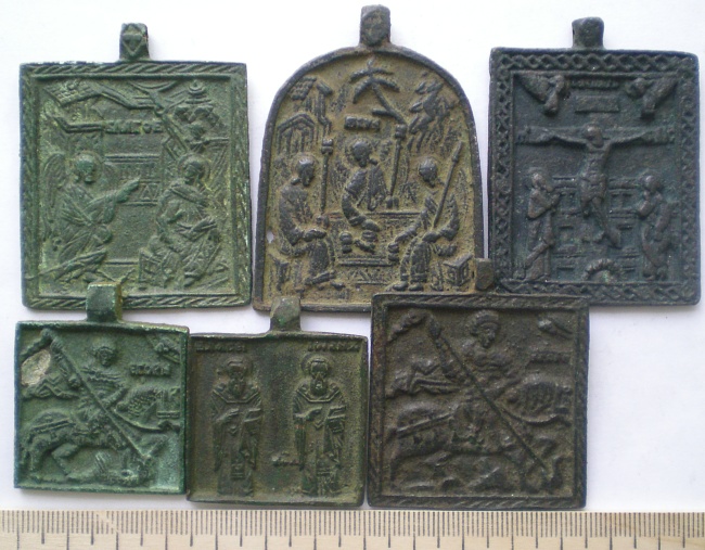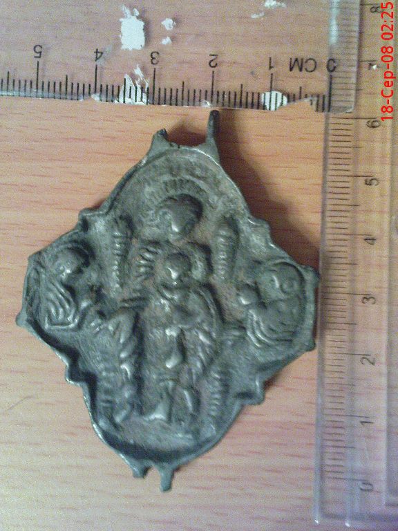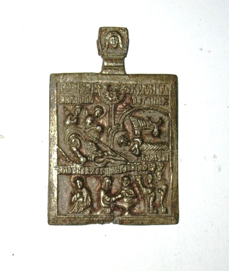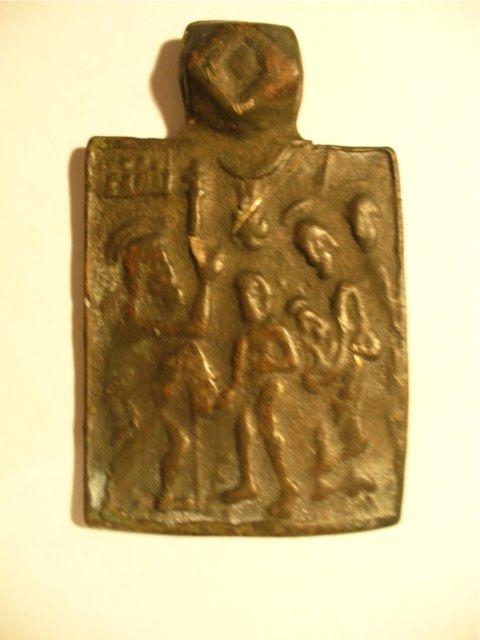 QUOTE(gelobor @ Oct 21 2009, 06:36) У меня вещица одна... Но какая..... !!! И вообще в наших краях очень редкая находка. Пришла с переселенцами скорее всего. И особенность - сюжеты с обеих сторон. Думаю специалисты оценят. Классная иконка! Л.с. Крещение Господне. Ваша отливка с более раннего типа иконок-мощевиков с навершием 14-15вв, изготовлена думаю в 16-17вв? |