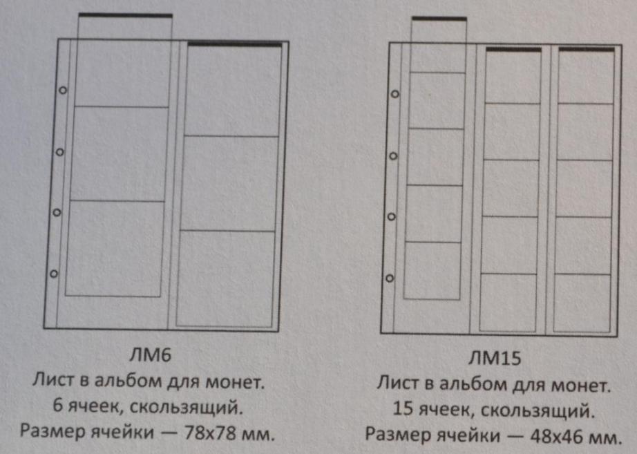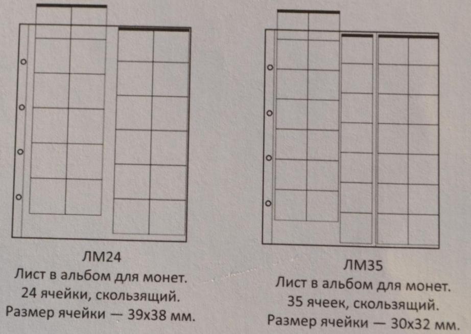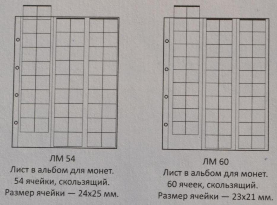 Листы для монет формата " Оптима " 200х250 мм. с выдвижными вставками. Пленка ПВХ повышенной прозрачности. Цена: 1 лист - 50 руб. 1. Лист на 6 ячеек. Ячейка 77*80 мм. 2. Лист на 15 ячеек. Ячейка 46*48 мм. 3. Лист на 24 ячейки. Ячейка 38*39 мм. 4. Лист на 35 ячеек. Ячейка 30*32 мм. 5. Лист на 37 ячеек. Комбинированный. 6. Лист на 40 ячеек. ( Для монет Евро) 7. Лист на 41 ячейку Комбинированный. 7. Лист на 54 ячеек. Ячейка 24*25 мм. 8. Лист на 60 ячеек. Ячейка 21*22 мм. Оплата на карту СБ Сообщение отредактировано mebius: Jul 10 2021, 23:45 Вложенные эскизы изображений |